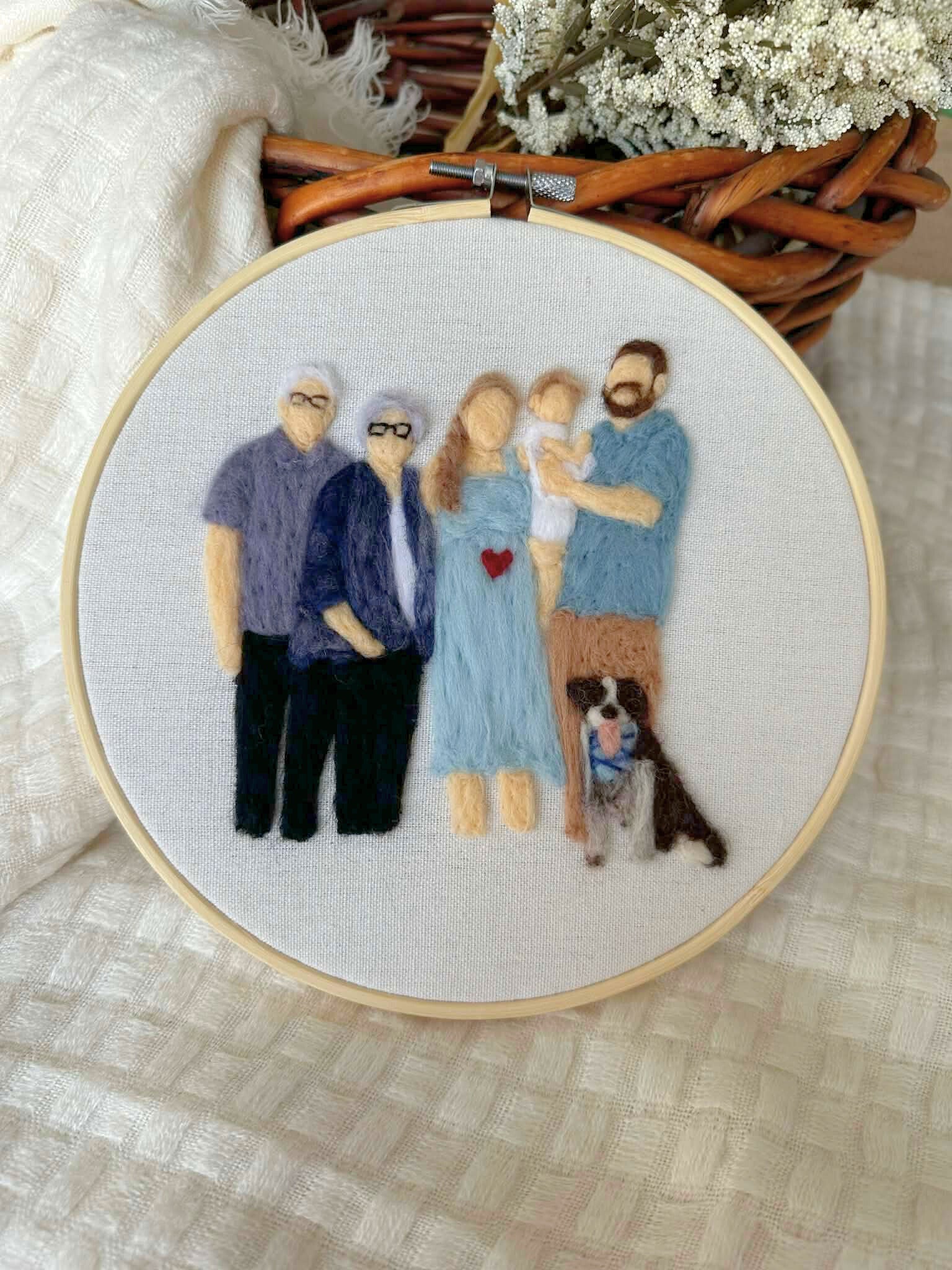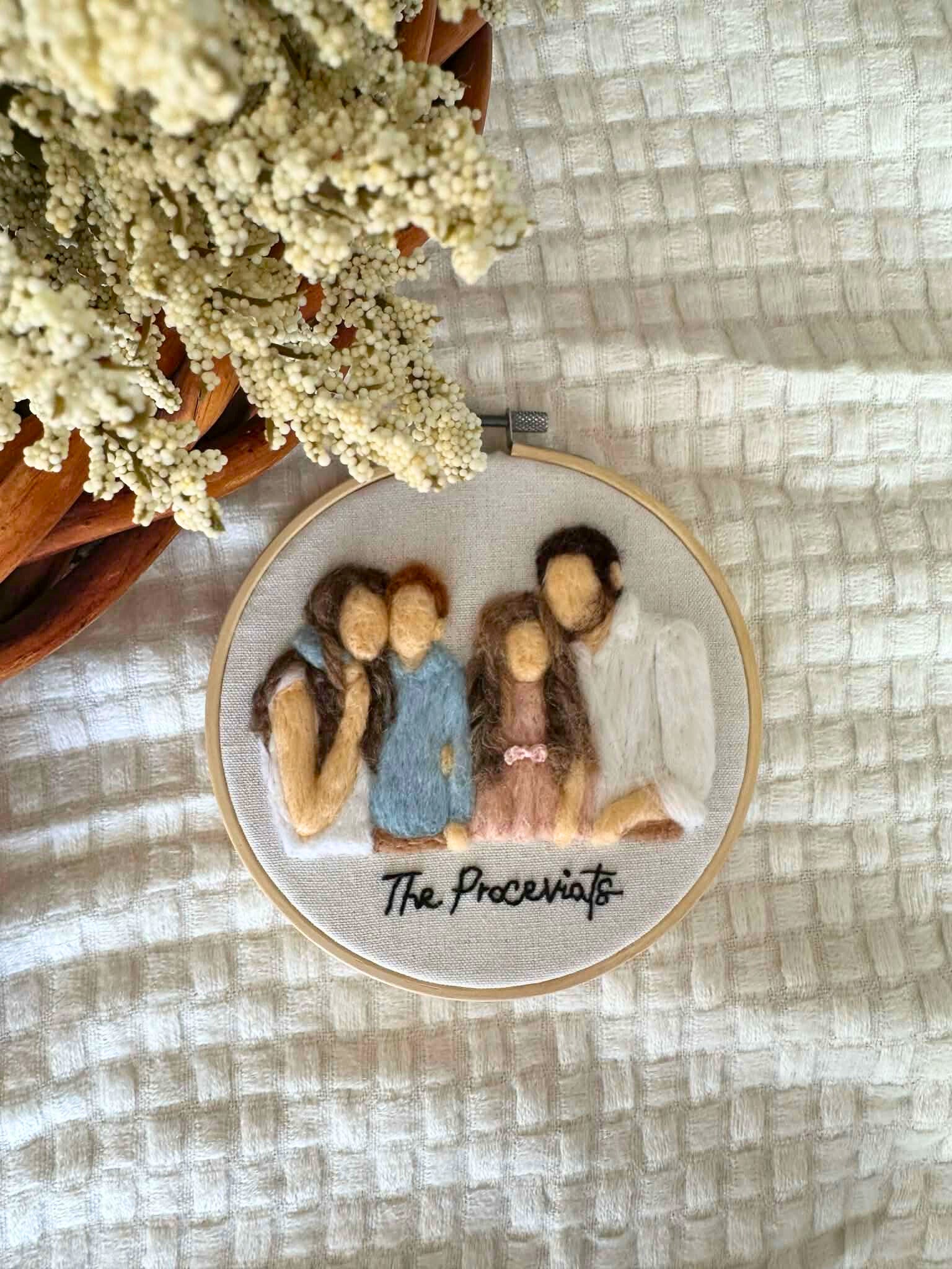 Portrait de famille personnalisé feutré à l'aiguille